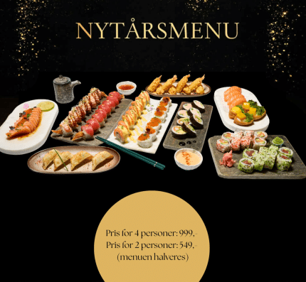 Menuen er til 4 personer og består af: 64 stk. sushi 🍣 8 stk. sashimi laks 4 stk. Kylling Goyza 4 stk. Crunchy rejer 1x Edamamebønner 🕙 Afhentning af nytårsmenu: Vi holder åbent for takeaway d. 31/12 kl. 10:00-17:30. GLÆDELIG JUL & GODT NYTÅR ❤